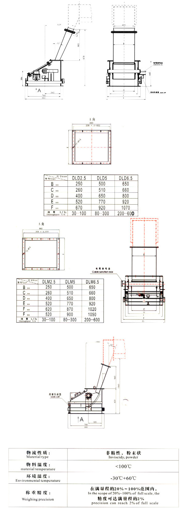 DLD(固體流量給料機)/DLM(固體流量計)是一種可對自由流動的粉料進行自動連續定量給料和計量的新型裝置。特別適合于工藝流程密閉空間受限制或由于溫度的影響而其它同類產品不能適用的場合。廣泛應用于建材、化工、鋼鐵、陶瓷、糧食、輕工、礦山等行業。DLD(固體流量給料機)/DLM(固體流量計)結構簡單、緊湊,防塵外殼占空間位置較小,無傳動動力系統,且適應能力強,長期穩定性好,可靠性高,在惡劣的工作環境下也能正常運行。采用高精度荷重傳感器及專用微機控制儀表。
